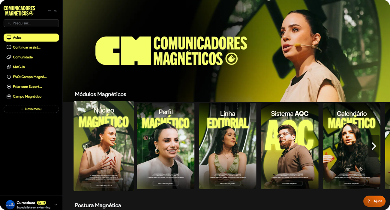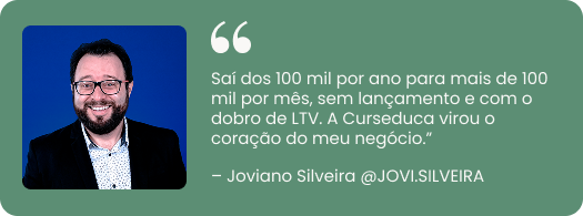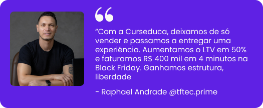 Faturamos R$4M em 18 meses com uma mentoria de R$30 mil e 60% de renovação. A Curseduca entregou mais que tecnologia: organizou a entrega, elevou a experiência e virou nosso campo de jogo para escalar com qualidade e retenção.”
