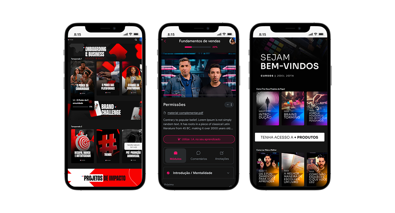 Design premium e humanizado para os seus alunos. Mais retenção e receita para o seu negócio.