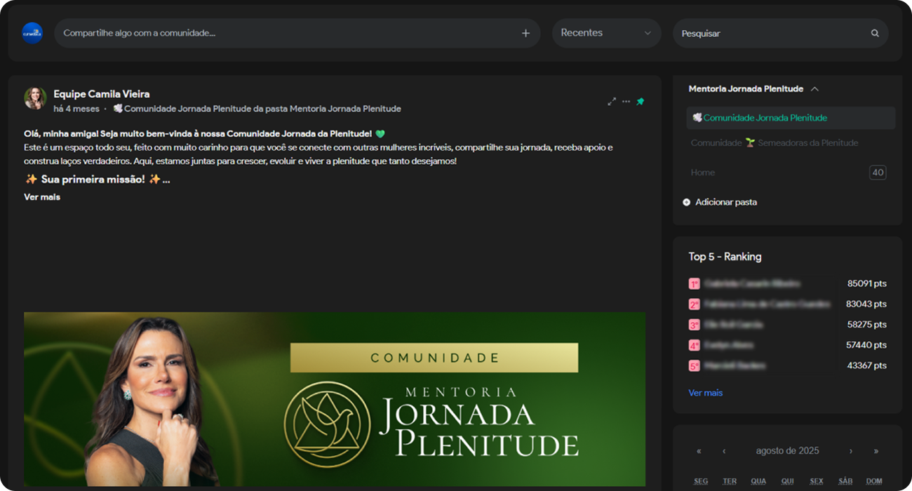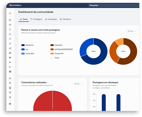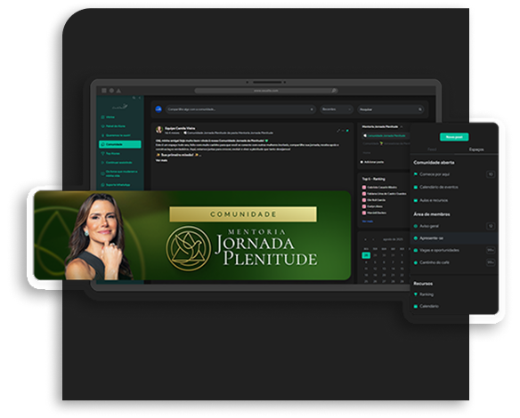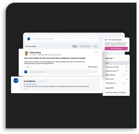 Centralize conversas, conteúdos e interações em um ambiente moderno, fluido e totalmente integrado à sua área de membros.