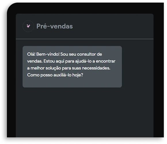Um assistente inteligente treinado para apresentar sua oferta, responder objeções e conduzir o cliente até a compra, com o tom da sua marca.