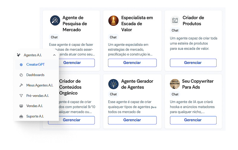 Centralize criação, atendimento e automação em um único lugar, com agentes treináveis, personalizáveis e prontos para escalar sua operação.