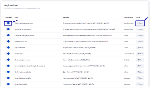 Personalize todos os e-mails automáticos enviados pela plataforma: pagamentos, acessos, liberações, notificações e muito mais.